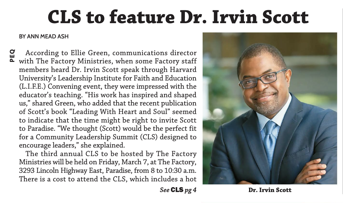 Article in the Pequea Valley Pennysaver, by Ann Mead Ash about The Factory Ministries Community Leadership Summit (CLS). To read click https://issuu.com/engleprintingandpublishing/docs/peq_022625
