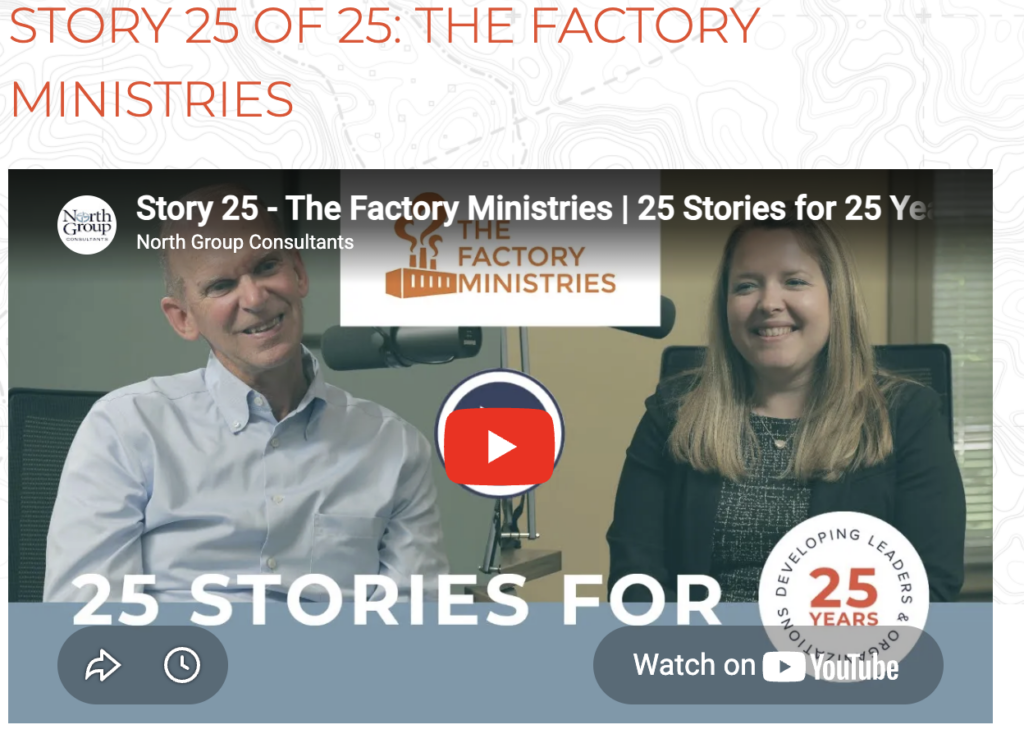 To watch the whole podcast click here: https://northgroupconsultants.com/podcast/story-25-of-25-the-factory-ministries/