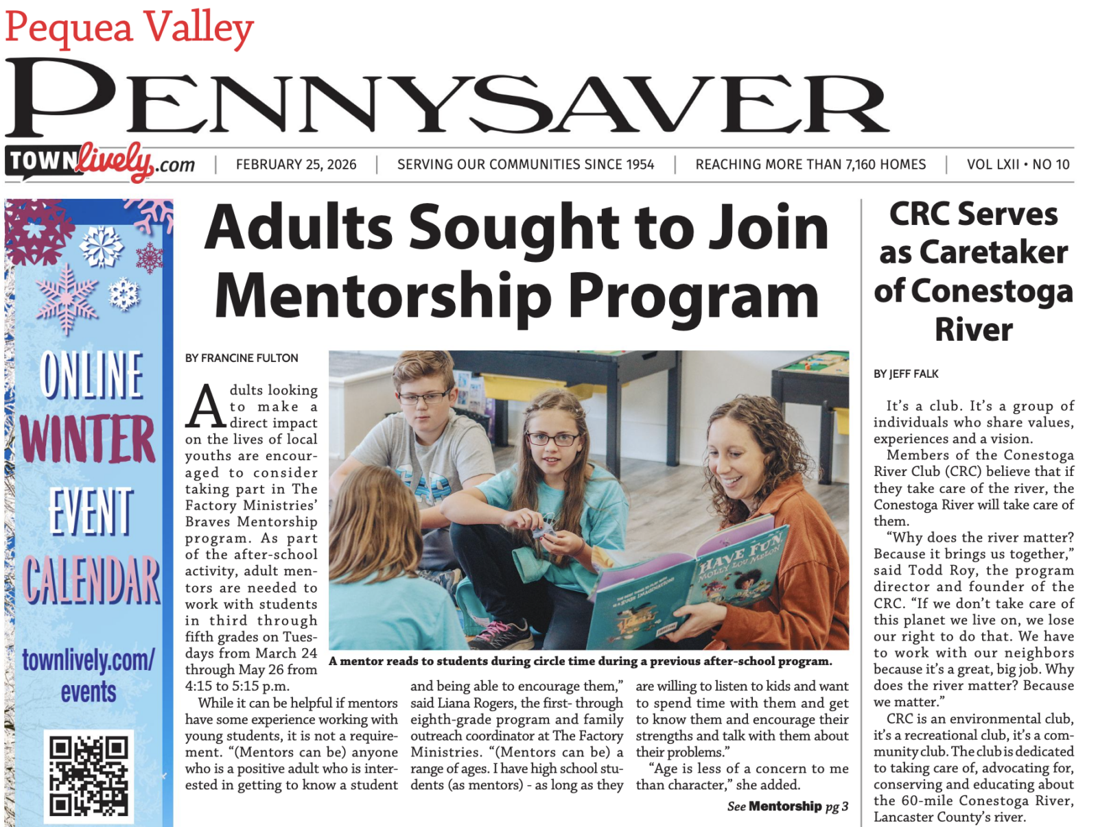 Article in the Pequea Valley Pennysaver, by Francine Fulton. To read click: https://issuu.com/engleprintingandpublishing/docs/peq_022526
