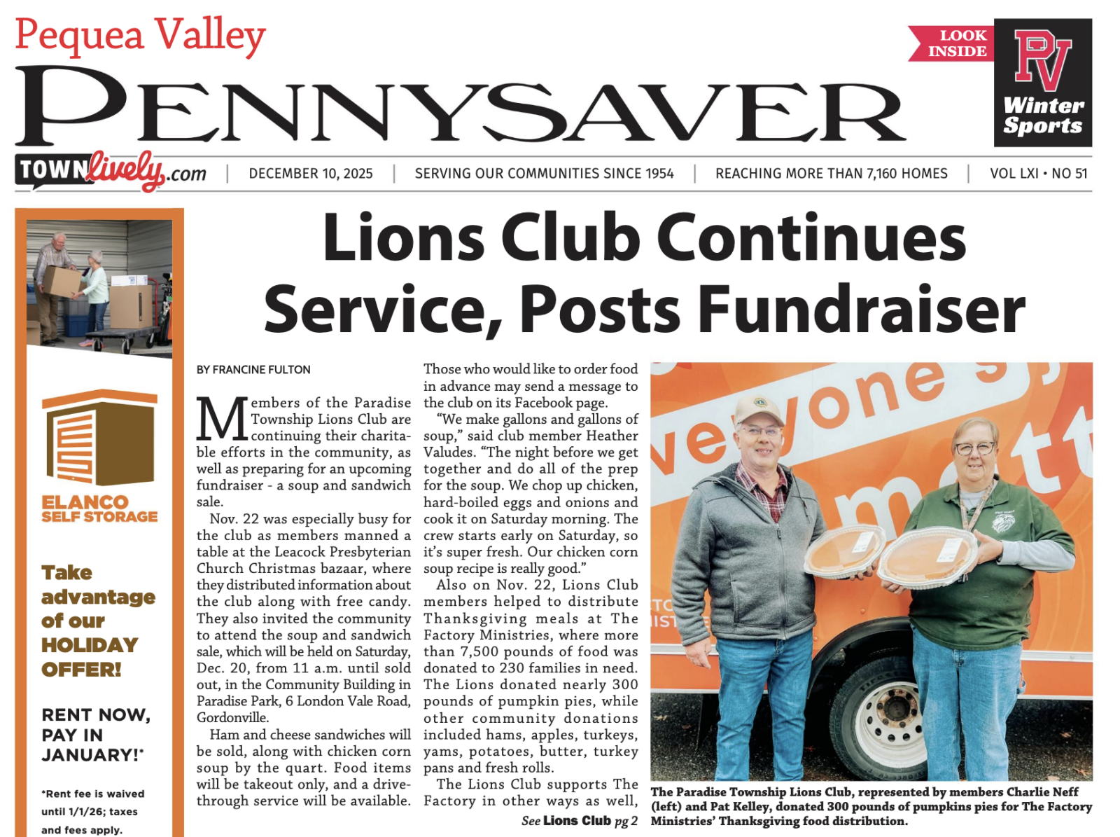 Article in the Pequea Valley Pennysaver, by Francine Fulton. To read click: https://issuu.com/engleprintingandpublishing/docs/peq_121025