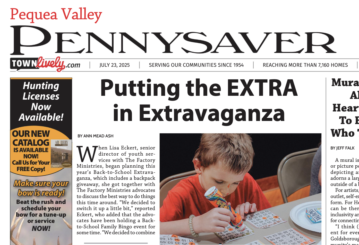 Article in the Pequea Valley Pennysaver, by Ann Mead Ash about The Factory Ministries Back to School Event. To read click https://issuu.com/engleprintingandpublishing/docs/peq_072325